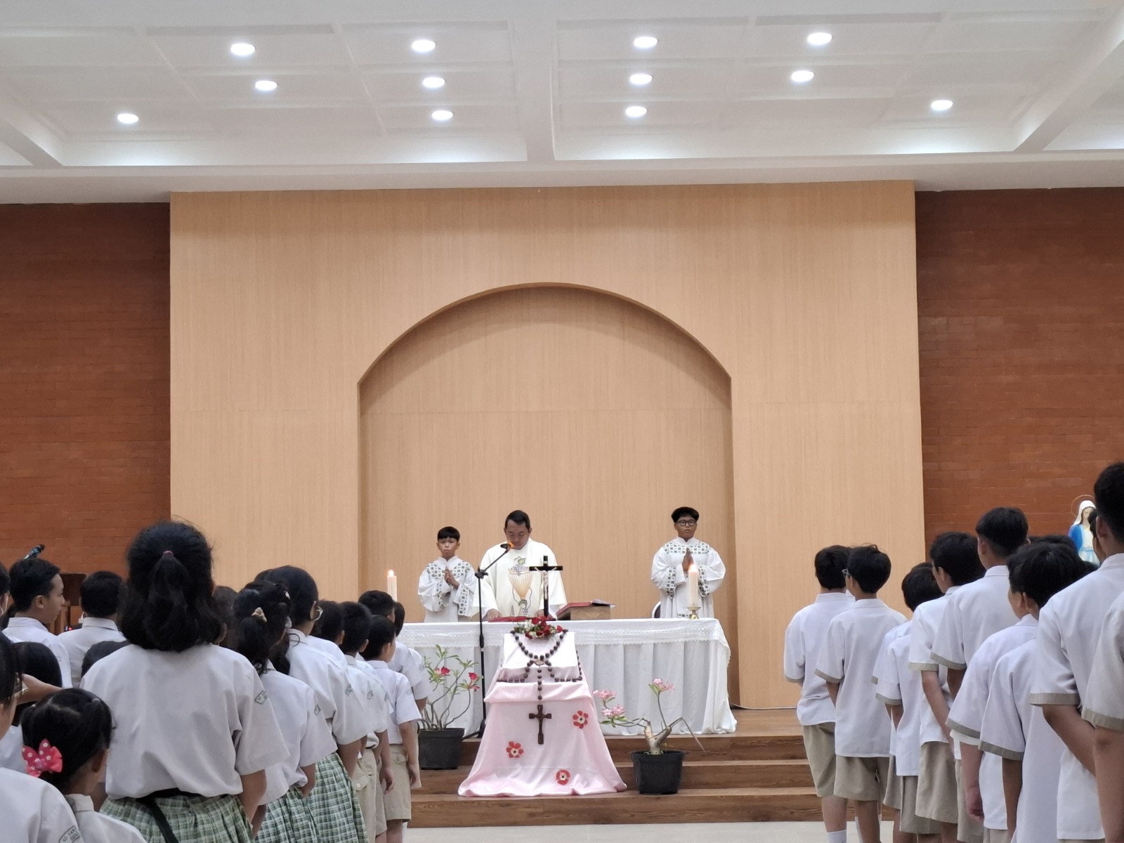 Suasana Piazza Santa Angela pagi itu terasa tenang dan damai, dihiasi dengan lantunan doa dan lagu-lagu rohani dari paduan suara siswa. Kegiatan ini juga menjadi sarana mempererat kebersamaan serta memperdalam nilai-nilai spiritual dalam lingkungan kampus.