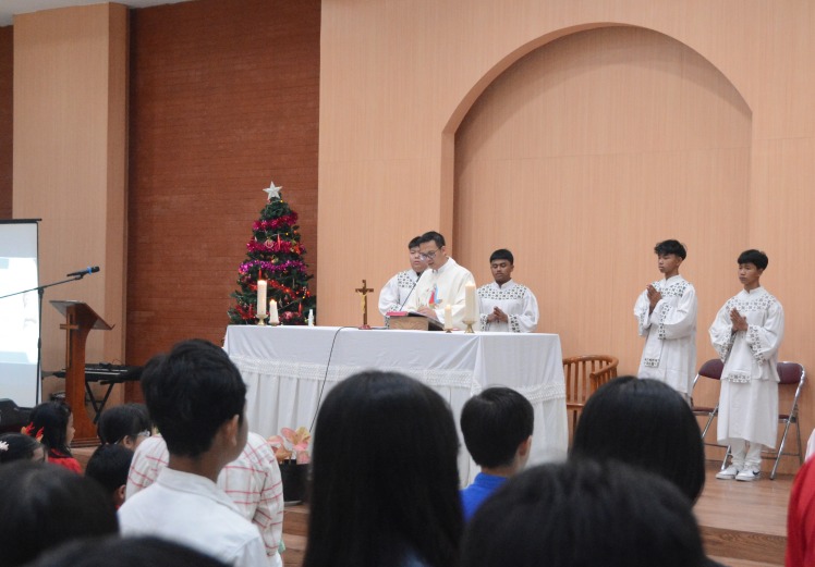 Misa kudus dipimpin oleh Rm. Aloysius Widya Yanuar Nugraha, atau yang akrab disapa Romo Louis. Dalam khotbahnya, beliau mengajak seluruh umat untuk memaknai kelahiran Yesus Kristus sebagai sumber harapan, kasih, dan damai, sekaligus menjadi momentum untuk memulai tahun baru dengan semangat iman serta pelayanan. Suasana misa berlangsung tertib dan penuh penghayatan, mencerminkan rasa syukur seluruh warga kampus atas penyertaan Tuhan sepanjang tahun yang telah dilalui.