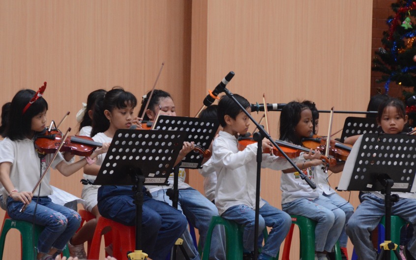 Setelah misa usai, acara dilanjutkan dengan perayaan Natal dan Tahun Baru yang dimeriahkan oleh berbagai penampilan seni dari peserta didik. Pentas seni yang ditampilkan antara lain gerak dan lagu, tari modern, tari tradisional, paduan suara, permainan biola, angklung, kolintang, serta penampilan band. Setiap pertunjukan disambut dengan antusiasme dan tepuk tangan meriah dari para penonton yang memenuhi area Piazza Santa Angela.