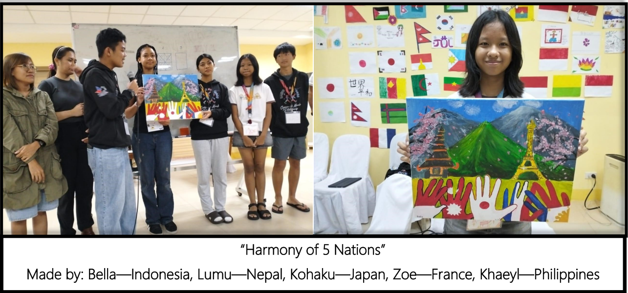 Akhirnya mama memutuskan tidak mau membantu, karena ingin Bella berusaha menyelesaikan masalahnya sendiri. Dan ternyata saat dia pulang ke Indonesia dan mama buka WA nya, saat art block itu dia berusaha kontak ke miss Vero guru gambarnya. Dia bertanya bagaimana cara mengatasinya. Dan hasil kolaborasi gambar “Harmony of 5 Nations” karya Bella dan teman teman dari Nepal, Jepang, Filipina dan Perancis sangat bagus bahkan terjual saat ada ada Fund Raising untuk anak anak di Gaza.